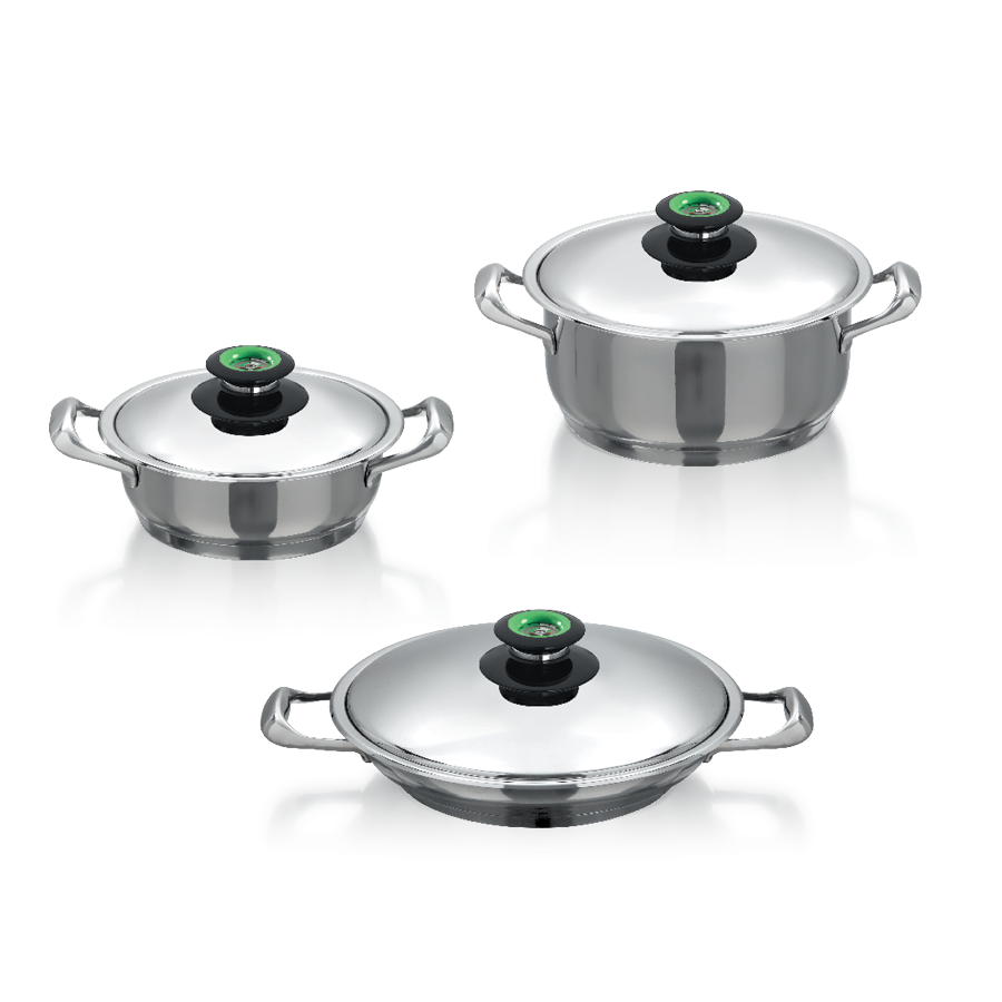 - With stainless steel handles the Gourmet units can be used in the oven, without the lid.