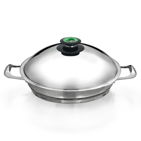With a large wide base, the AMC 30 cm Gourmet Dome Fry Pan is ideal for frying portions of fish, chicken or many meatballs, or sautéing a large amount of vegetables. As it has a dome lid, you could also pot-roast a joint of meat with vegetables or a whole chicken and vegetables all in one unit.