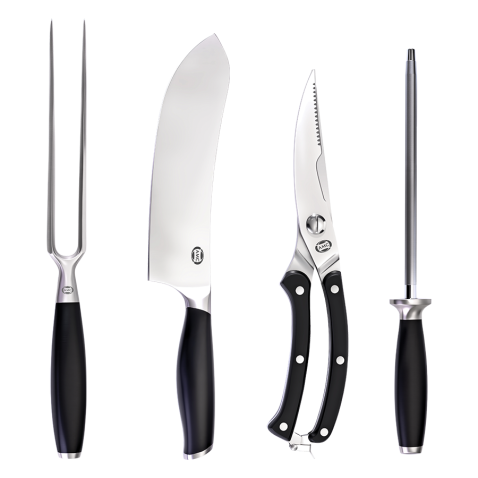 This complete carving set is designed to make meat and poultry preparation effortless and precise. Each tool is crafted for durability, comfort and control, ensuring professional-quality results every time. From slicing roasts to trimming poultry, this set has everything you need for confident, efficient carving.